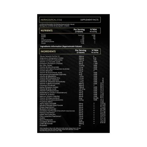 One of its kind formulation to combine all essential Vitamins, Minerals and Test Booster complex.
